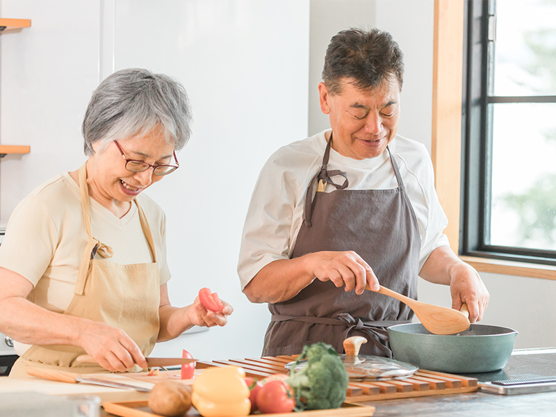 食材の下ごしらえから盛り付けまでの調理工程を通じて、手指の動きや段取り力を養い、達成感や食への関心を高めるトレーニングを行います。