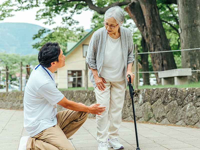 芝生や砂利道、舗装路など、隣接する公園内の多様な路面を活かし、足裏の感覚刺激やバランス力の向上を促す歩行トレーニングを行います。