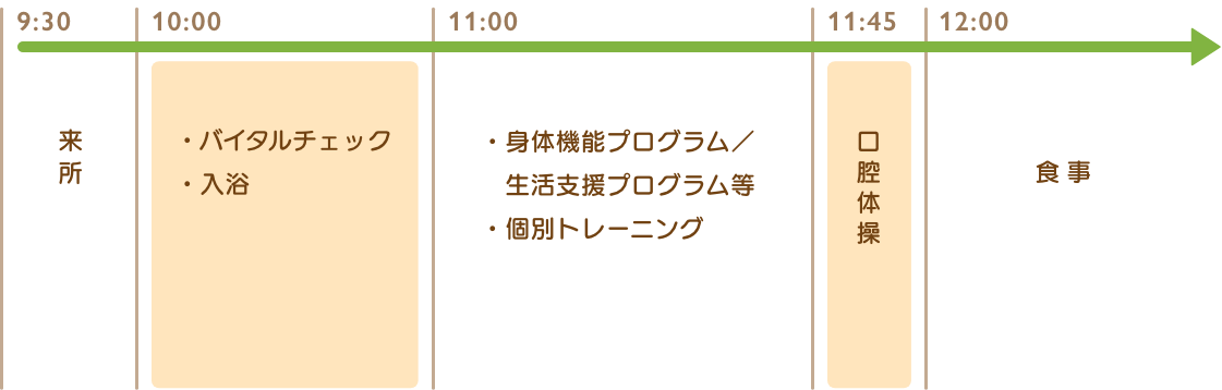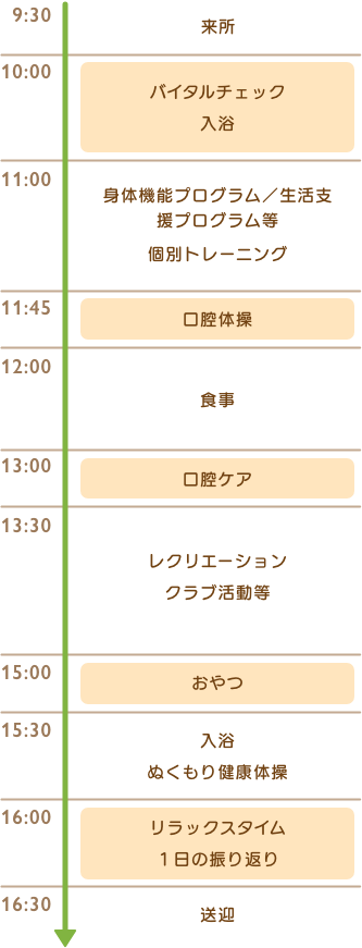 日々の暮らしの中で、ご利用者が不安に思っている生活動作をトレーニングします。それだけで生活の質はぐっと高まります。ぬくもりデイサービスでは、ご利用者一人ひとりの生活スタイルや希望に合わせて、無理なく、心地よく取り組める生活支援プログラムを展開しています。